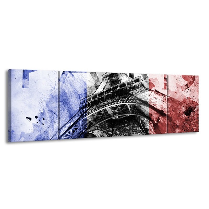 Canvas Schilderij Parijs, Eiffeltoren | Blauw, Rood, Zwart | 170x50cm 3Luik