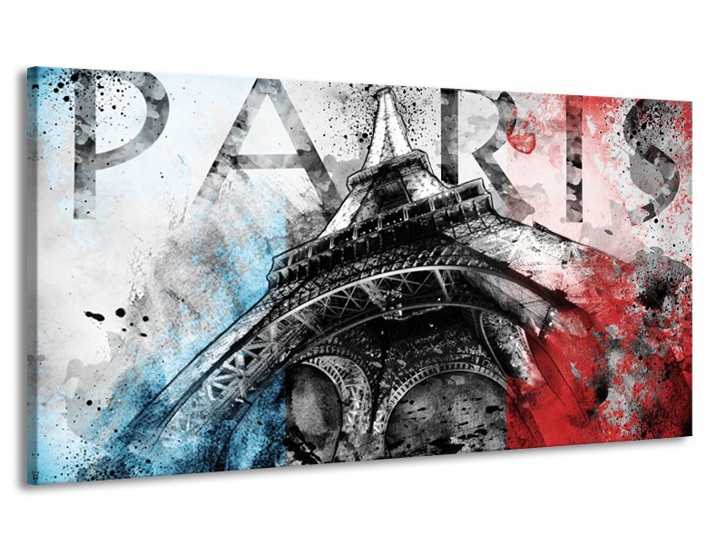 Canvas Schilderij Parijs, Eiffeltoren | Blauw, Rood, Zwart | 170x90cm 1Luik