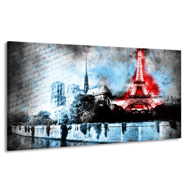 Canvas Schilderij Parijs, Eiffeltoren | Blauw, Rood, Zwart | 170x90cm 1Luik