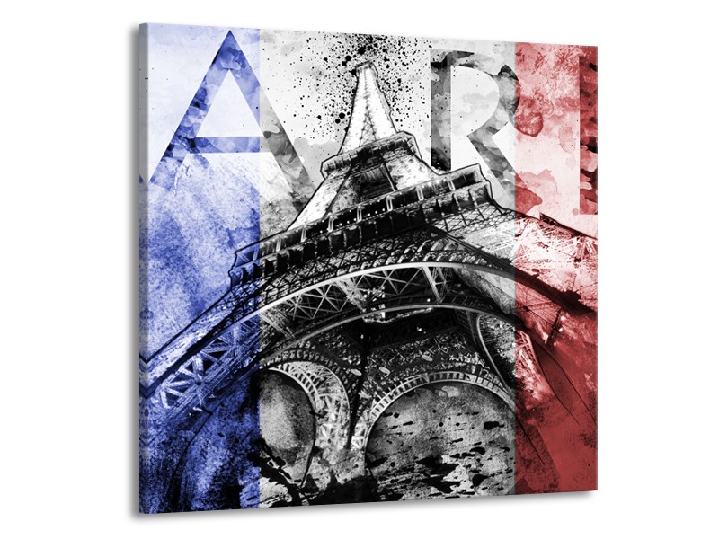Canvas Schilderij Parijs, Eiffeltoren | Blauw, Rood, Zwart | 50x50cm 1Luik