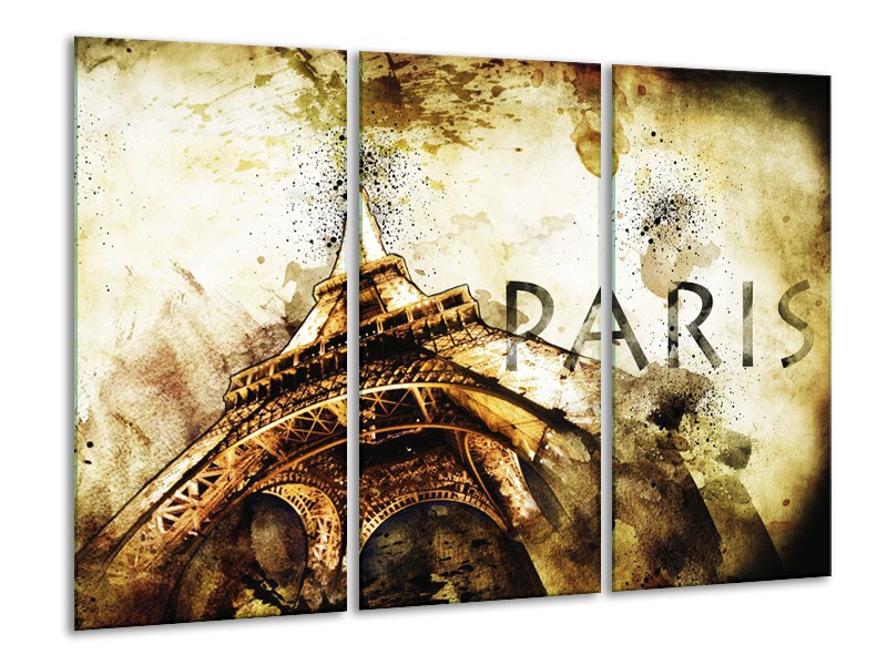 Canvas Schilderij Parijs, Eiffeltoren | Bruin, Zwart, Geel | 120x80cm 3Luik