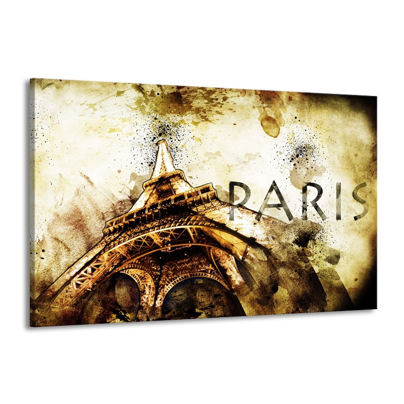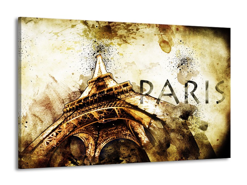Canvas Schilderij Parijs, Eiffeltoren | Bruin, Zwart, Geel | 140x90cm 1Luik