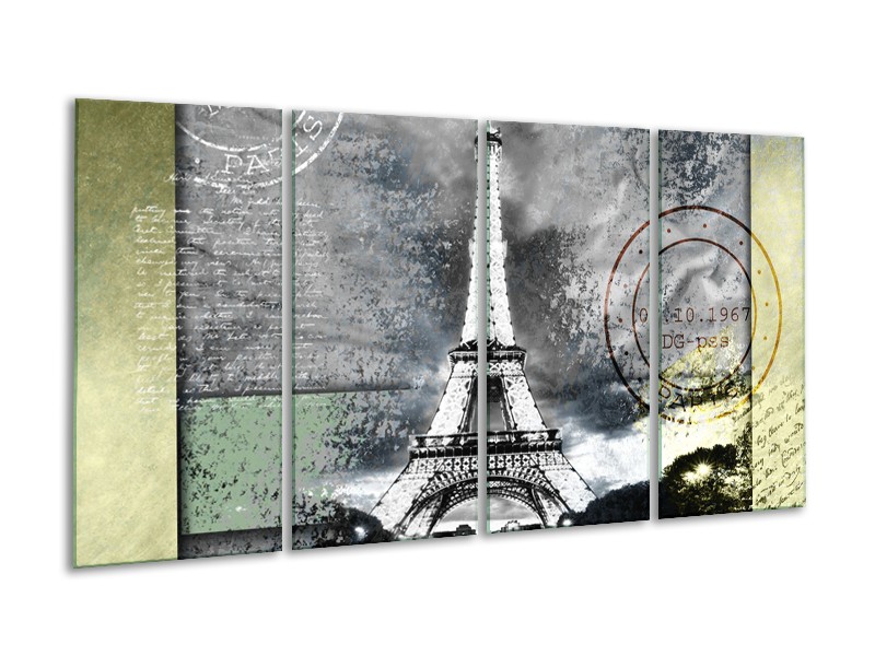 Canvas Schilderij Parijs, Eiffeltoren | Grijs, Crème, Groen | 160x80cm 4Luik