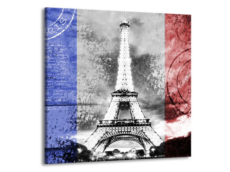 Canvas Schilderij Parijs, Eiffeltoren | Grijs, Rood, Blauw | 50x50cm 1Luik