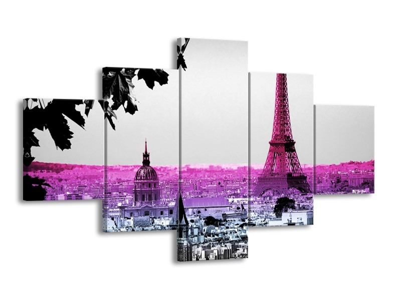 Canvas Schilderij Parijs, Eiffeltoren | Paars, Roze, Grijs | 125x70cm 5Luik