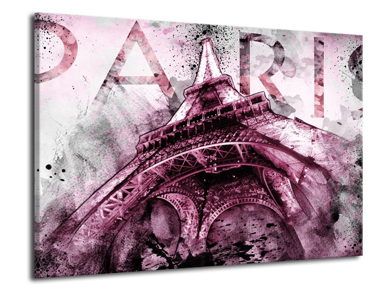 Canvas Schilderij Parijs, Eiffeltoren | Paars, Roze, Grijs | 70x50cm 1Luik