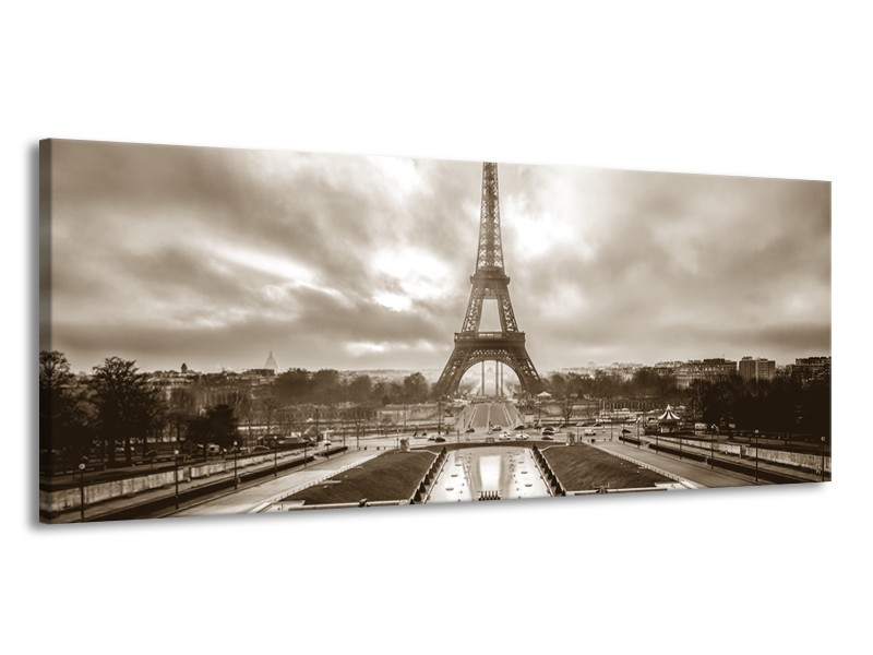 Canvas Schilderij Parijs, Eiffeltoren | Sepia | 145x58cm 1Luik