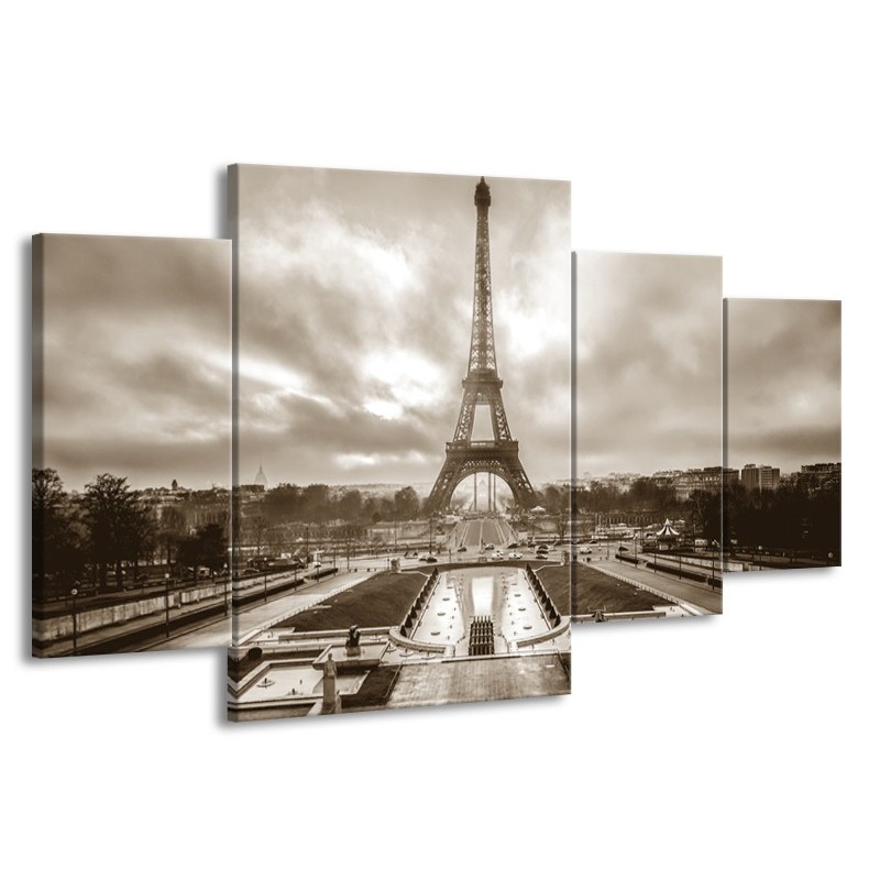 Canvas Schilderij Parijs, Eiffeltoren | Sepia | 160x90cm 4Luik