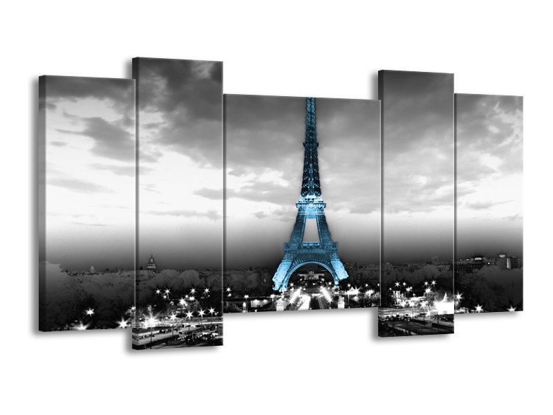 Canvas Schilderij Parijs, Eiffeltoren | Zwart, Wit, Blauw | 120x65cm 5Luik