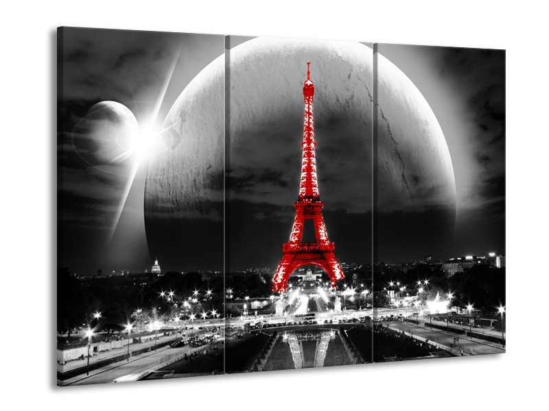 Canvas Schilderij Parijs, Eiffeltoren | Zwart, Wit, Rood | 60x90cm 3Luik