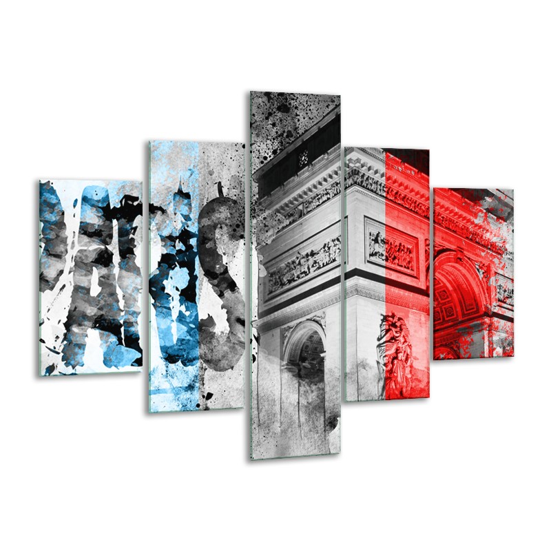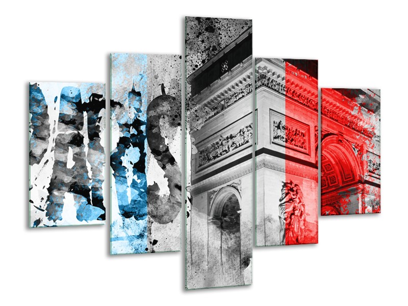 Canvas Schilderij Parijs, Steden | Blauw, Rood, Grijs | 100x70cm 5Luik