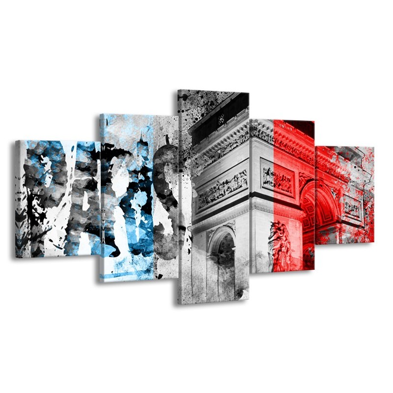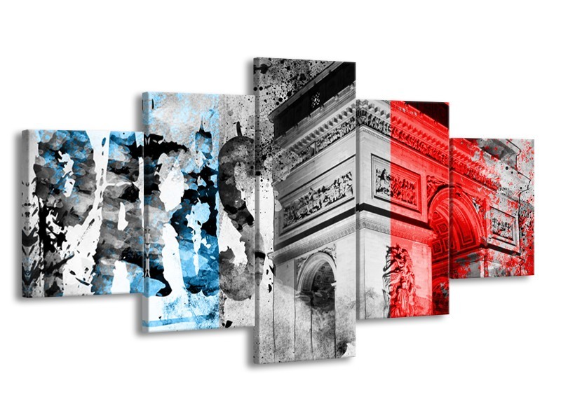 Canvas Schilderij Parijs, Steden | Blauw, Rood, Grijs | 150x80cm 5Luik