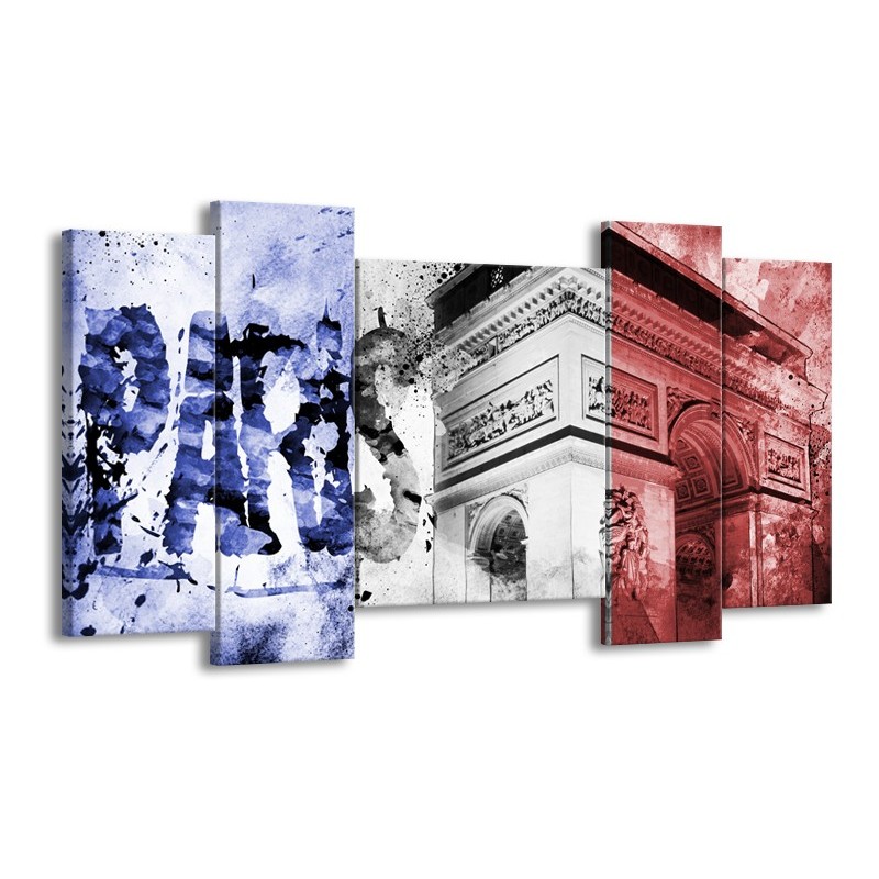 Canvas Schilderij Parijs, Steden | Blauw, Rood, Zwart | 120x65cm 5Luik