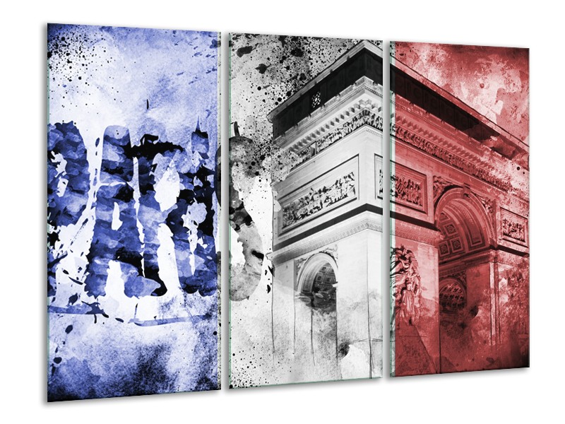 Canvas Schilderij Parijs, Steden | Blauw, Rood, Zwart | 120x80cm 3Luik