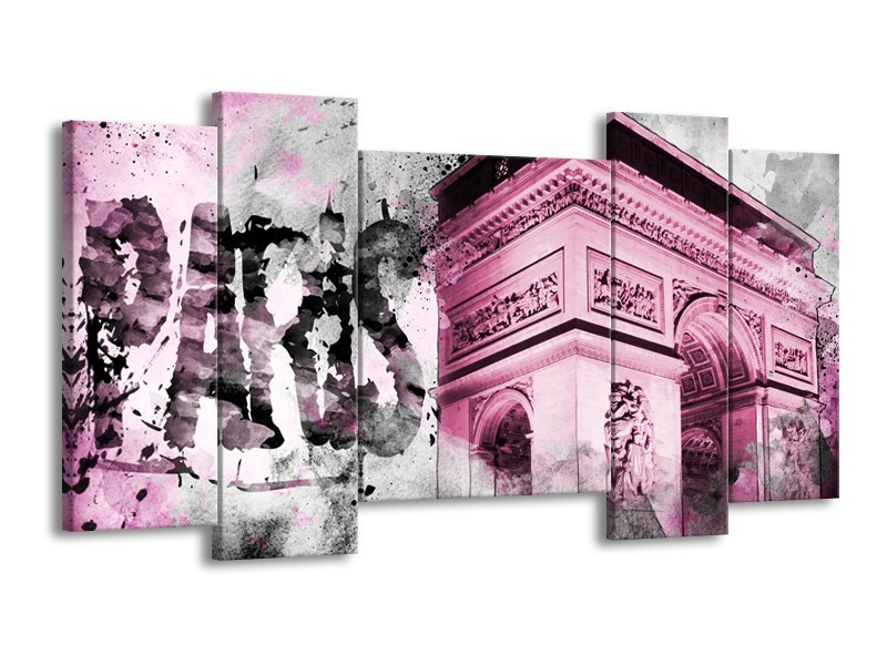 Canvas Schilderij Parijs, Steden | Paars, Roze, Grijs | 120x65cm 5Luik