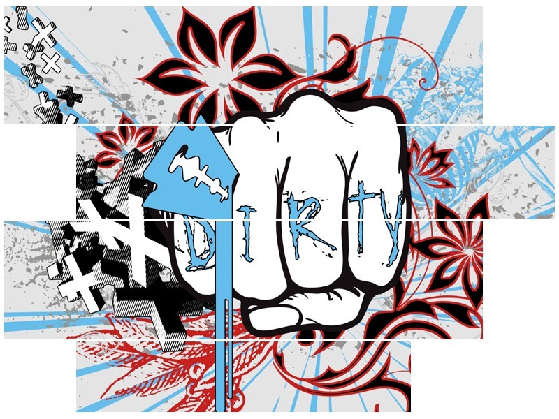 Canvas Schilderij Popart | Grijs, Blauw, Rood | 115x85cm 4Luik