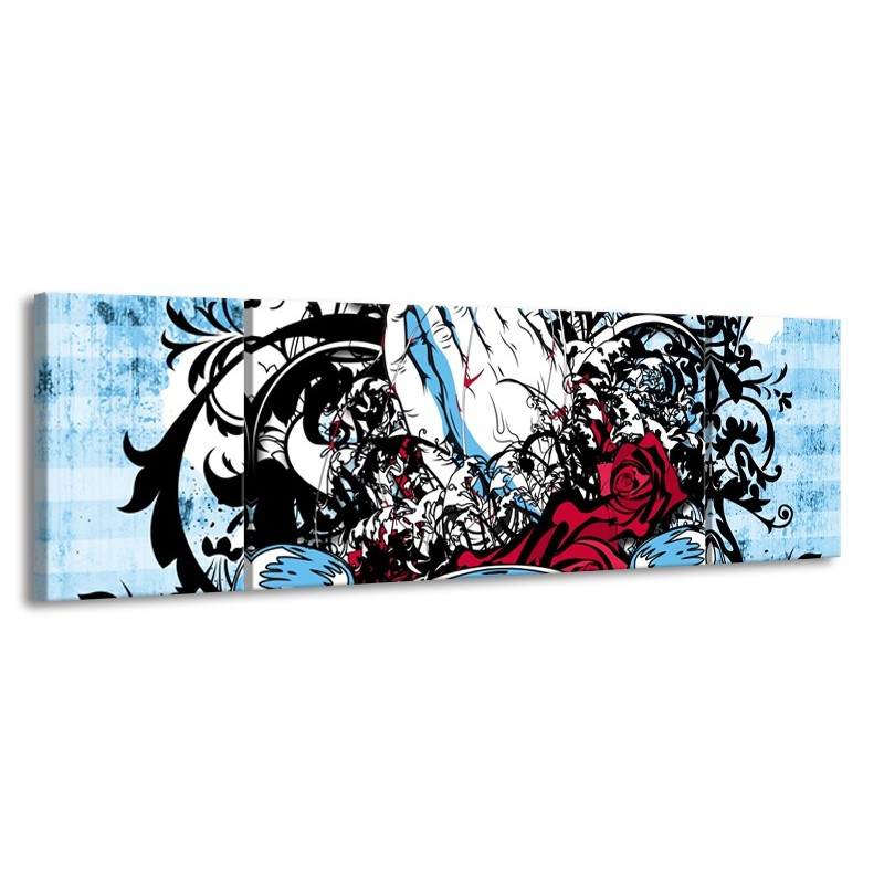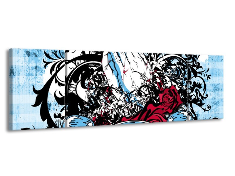 Canvas Schilderij Popart, Handen | Blauw, Rood, Zwart | 170x50cm 3Luik