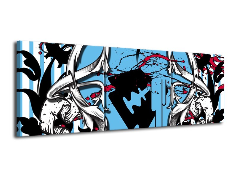 Canvas Schilderij Popart, Hart | Grijs, Zwart, Blauw | 120x40cm 3Luik