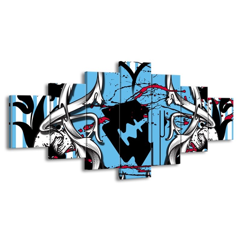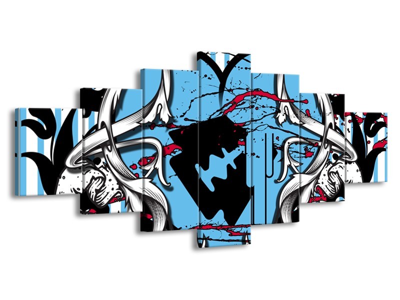 Canvas Schilderij Popart, Hart | Grijs, Zwart, Blauw | 210x100cm 7Luik