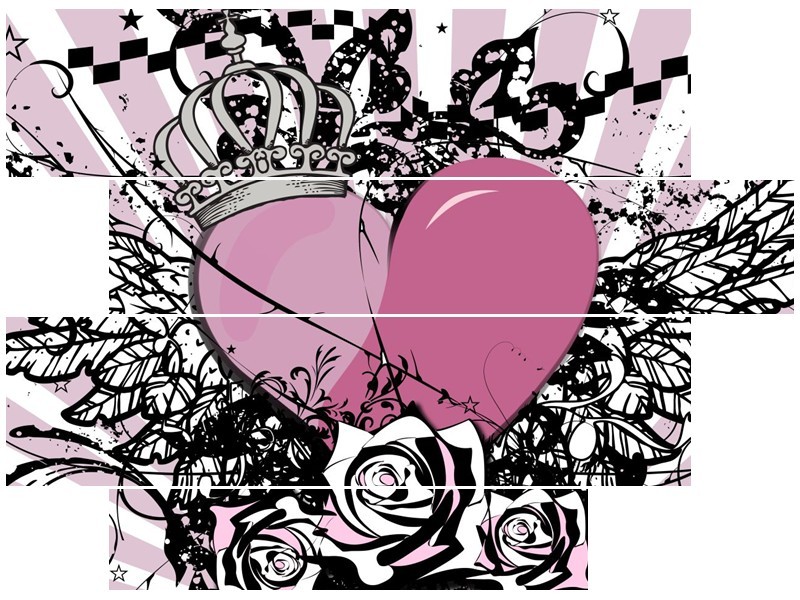 Canvas Schilderij Popart, Hart | Paars, Roze, Grijs | 115x85cm 4Luik
