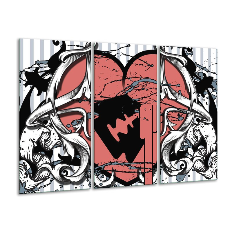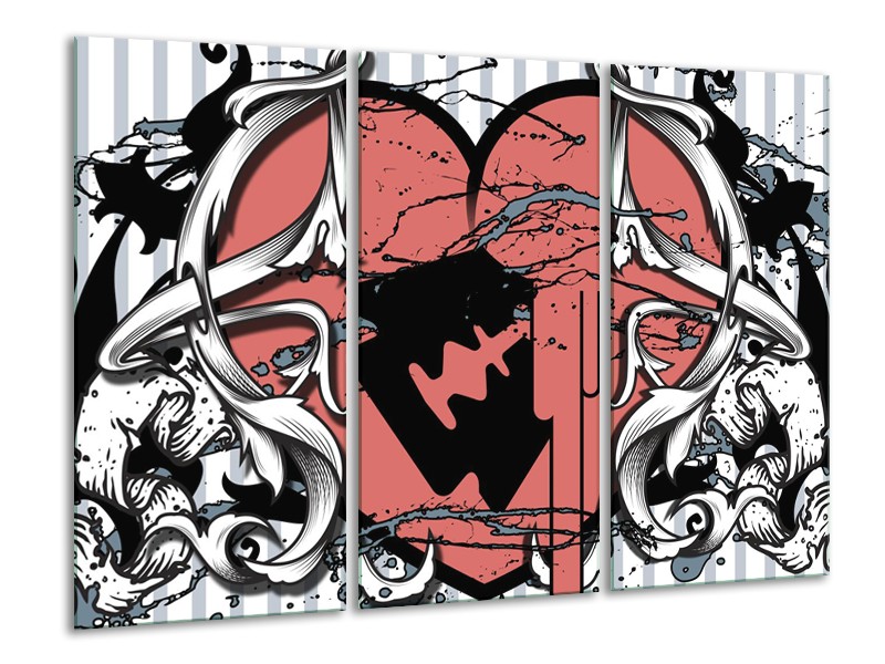 Canvas Schilderij Popart, Hart | Rood, Grijs, Zwart | 120x80cm 3Luik