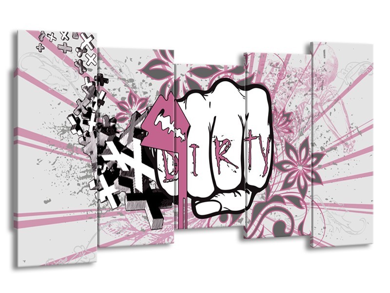 Canvas Schilderij Popart | Paars, Roze, Grijs | 150x80cm 5Luik
