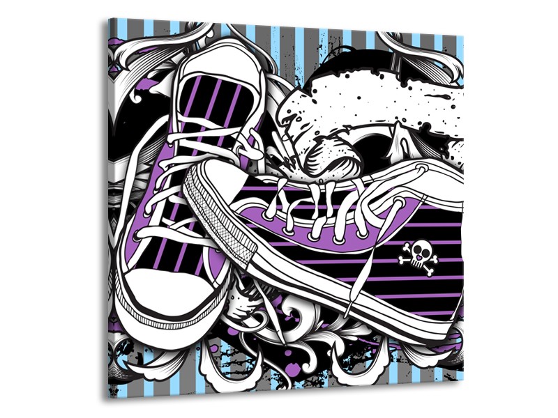 Canvas Schilderij Popart, Schoenen | Grijs, Paars, Wit | 50x50cm 1Luik