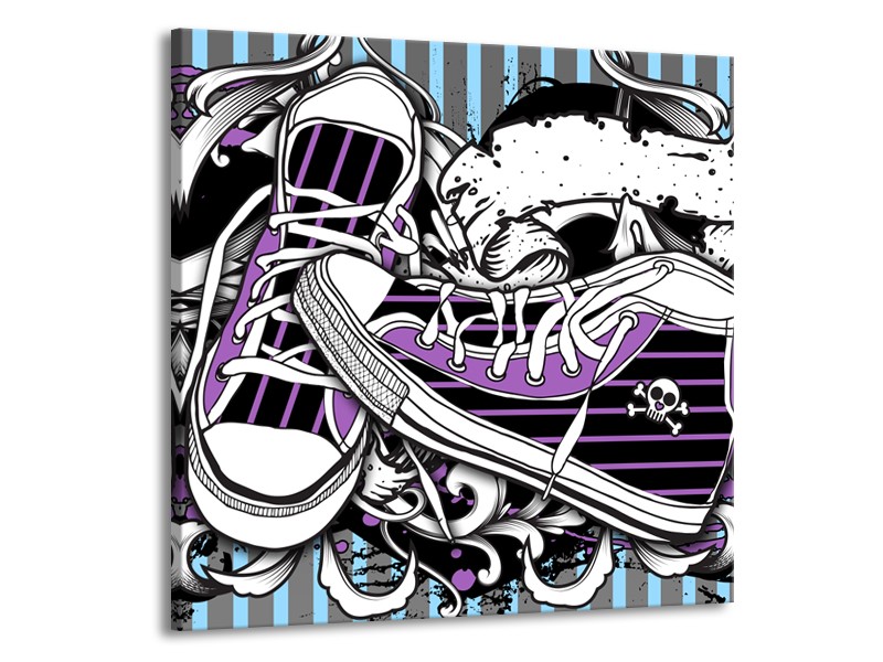 Canvas Schilderij Popart, Schoenen | Grijs, Paars, Wit | 70x70cm 1Luik