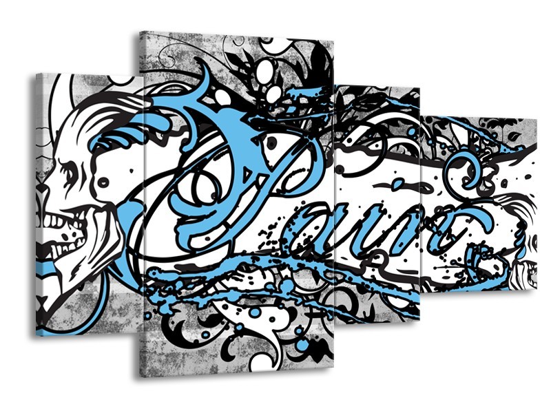 Canvas Schilderij Popart | Zwart, Wit, Blauw | 120x75cm 4Luik