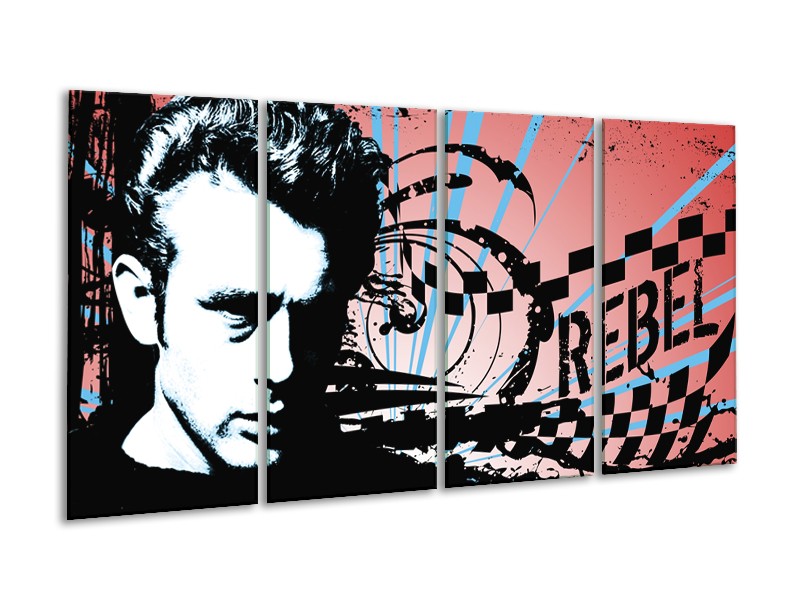 Canvas Schilderij Popart | Zwart, Wit, Blauw | 160x80cm 4Luik