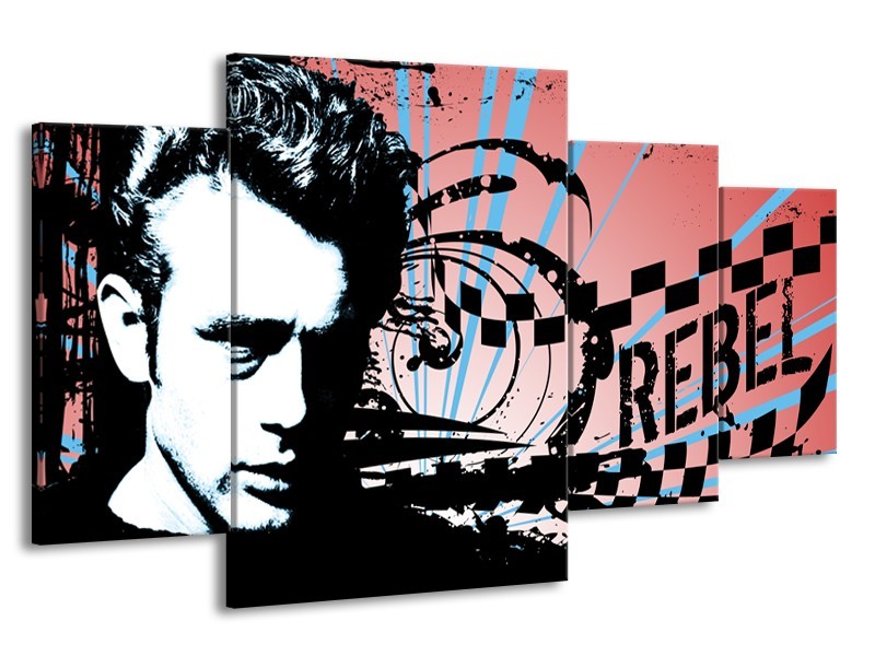Canvas Schilderij Popart | Zwart, Wit, Blauw | 160x90cm 4Luik