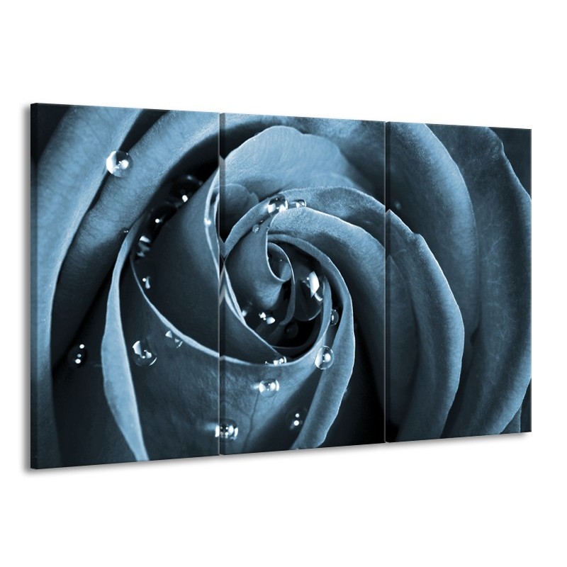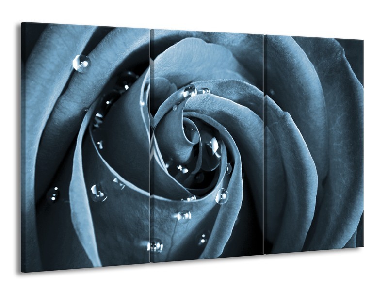 Canvas Schilderij Roos | Blauw, Grijs | 165x100cm 3Luik