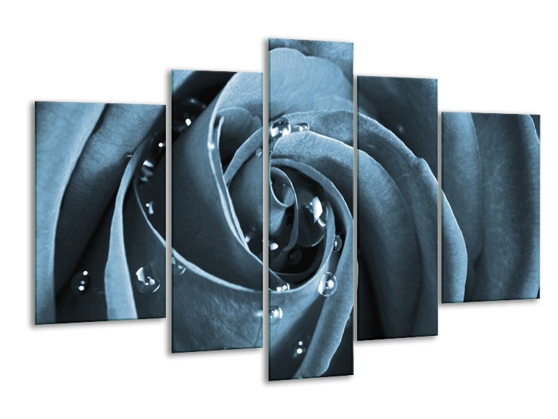Canvas Schilderij Roos | Blauw, Grijs | 170x100cm 5Luik
