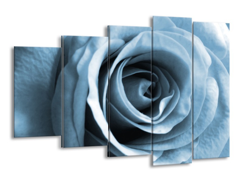 Canvas Schilderij Roos, Bloem | Blauw, Grijs, Wit | 150x100cm 5Luik