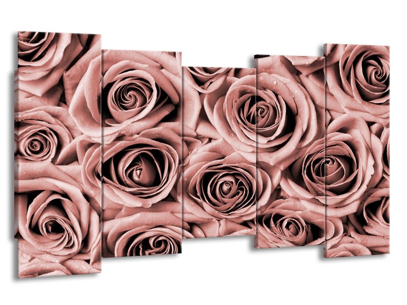 Canvas Schilderij Roos, Bloem | Bruin, Rood | 150x80cm 5Luik