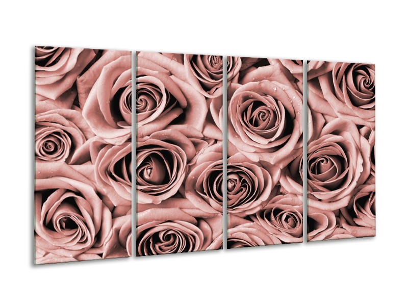 Canvas Schilderij Roos, Bloem | Bruin, Rood | 160x80cm 4Luik