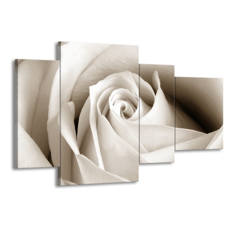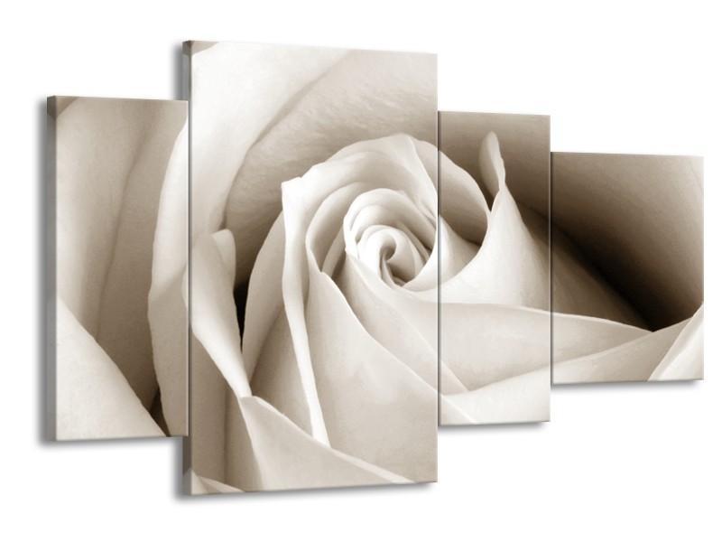 Canvas Schilderij Roos, Bloem | Crème, Sepia | 120x75cm 4Luik