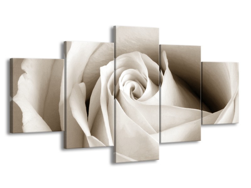 Canvas Schilderij Roos, Bloem | Crème, Sepia | 150x80cm 5Luik