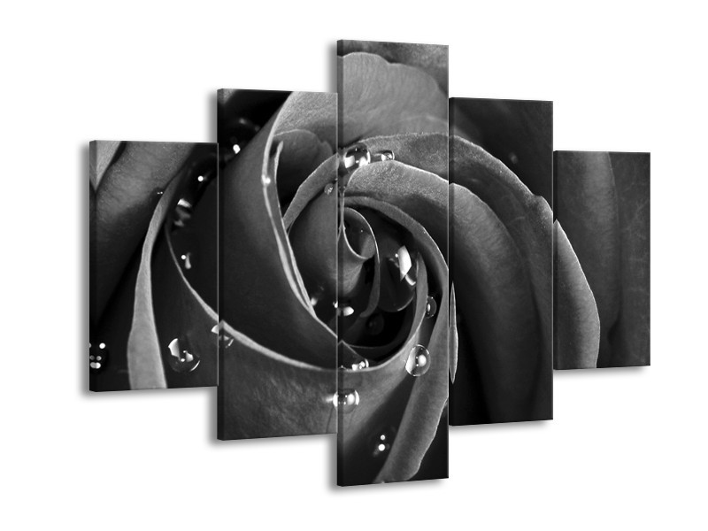 Canvas Schilderij Roos, Bloem | Grijs, Zwart | 150x105cm 5Luik