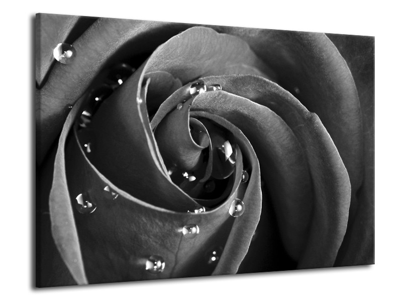 Canvas Schilderij Roos, Bloem | Grijs, Zwart | 70x50cm 1Luik
