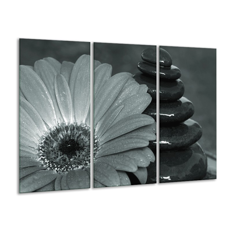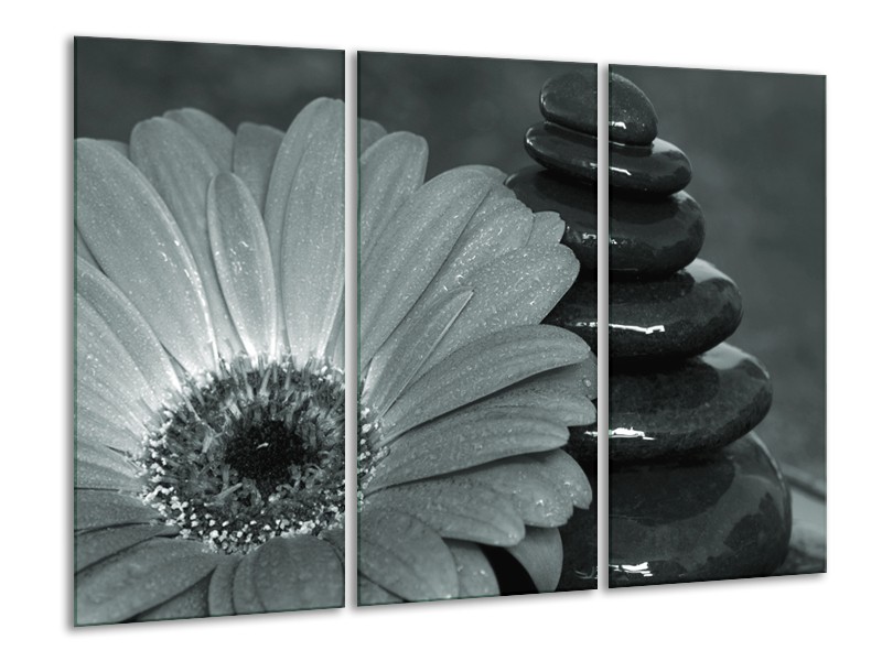 Canvas Schilderij Roos, Bloem | Grijs, Zwart, Groen | 120x80cm 3Luik