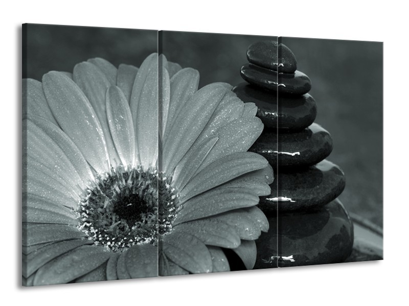 Canvas Schilderij Roos, Bloem | Grijs, Zwart, Groen | 165x100cm 3Luik