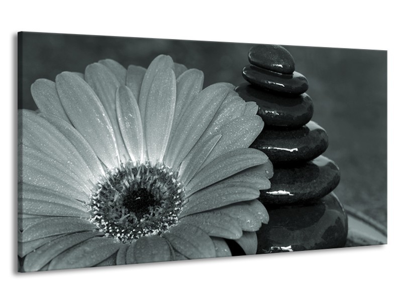 Canvas Schilderij Roos, Bloem | Grijs, Zwart, Groen | 190x100cm 1Luik