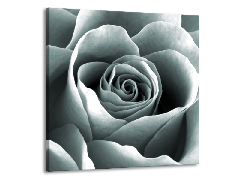 Canvas Schilderij Roos, Bloem | Grijs, Zwart, Groen | 50x50cm 1Luik