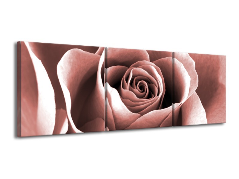Canvas Schilderij Roos, Bloem | Rood, Bruin | 150x50cm 3Luik