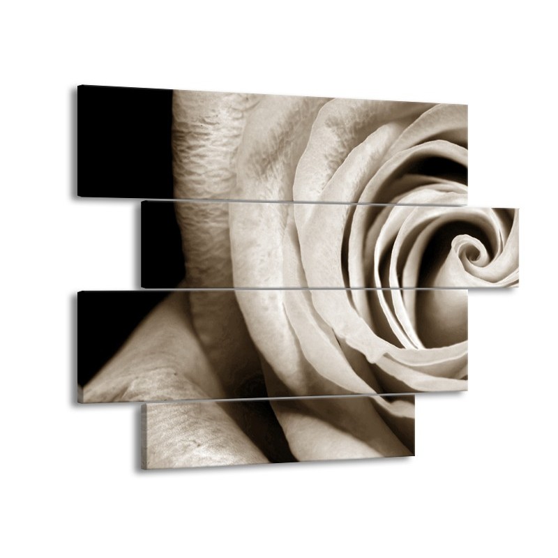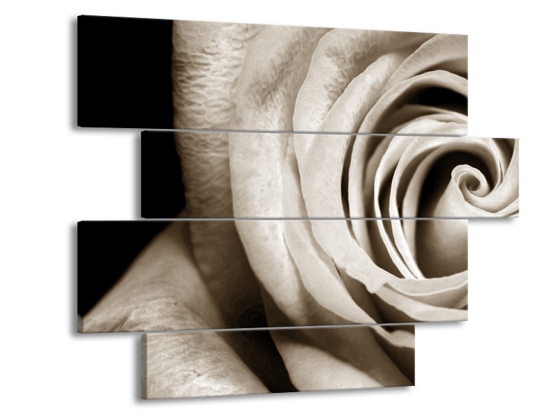 Canvas Schilderij Roos, Bloem | Sepia, Bruin, Zwart | 115x85cm 4Luik