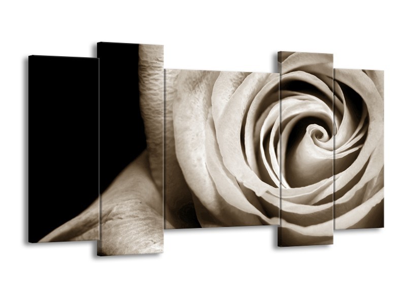 Canvas Schilderij Roos, Bloem | Sepia, Bruin, Zwart | 120x65cm 5Luik