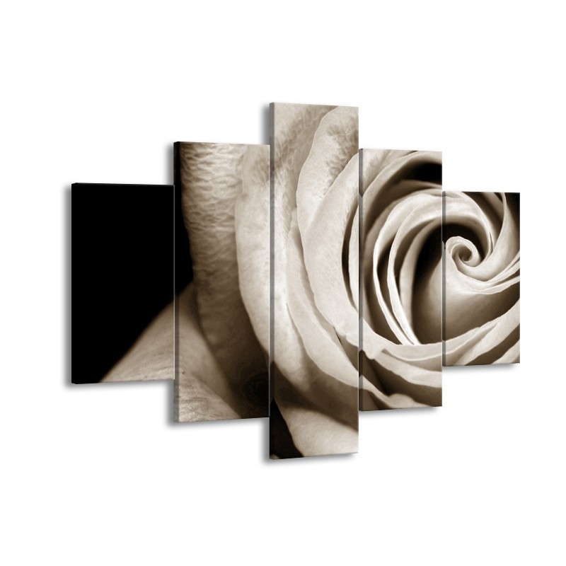 Canvas Schilderij Roos, Bloem | Sepia, Bruin, Zwart | 150x105cm 5Luik