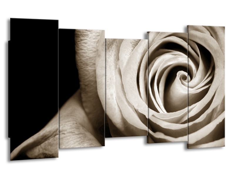 Canvas Schilderij Roos, Bloem | Sepia, Bruin, Zwart | 150x80cm 5Luik
