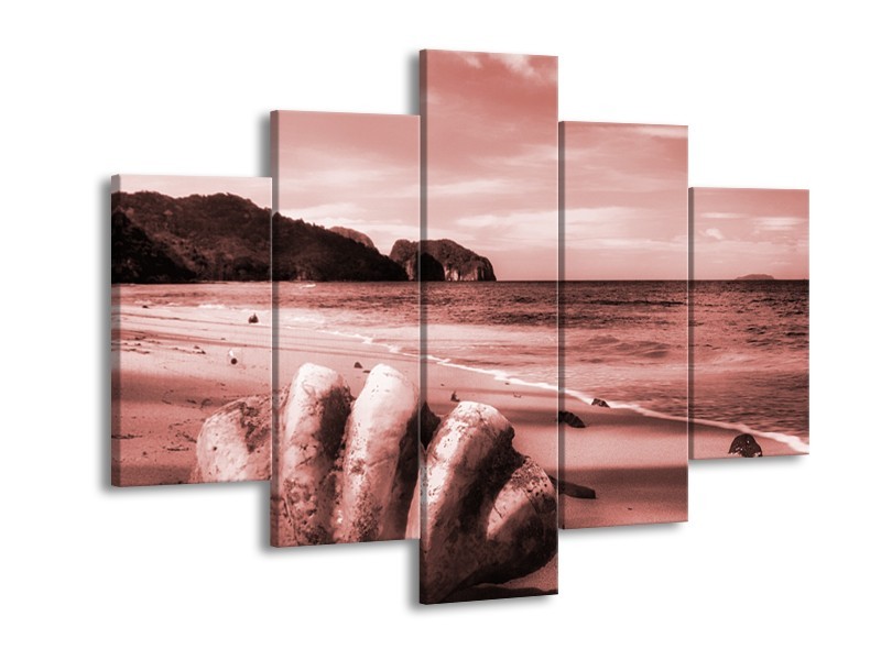 Canvas Schilderij Schelp, Strand | Bruin, Rood | 150x105cm 5Luik